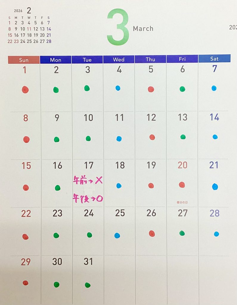 3月の診察スケジュール